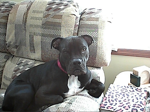 my dog, tonka!...we try to make her look nice w/ that pink collar